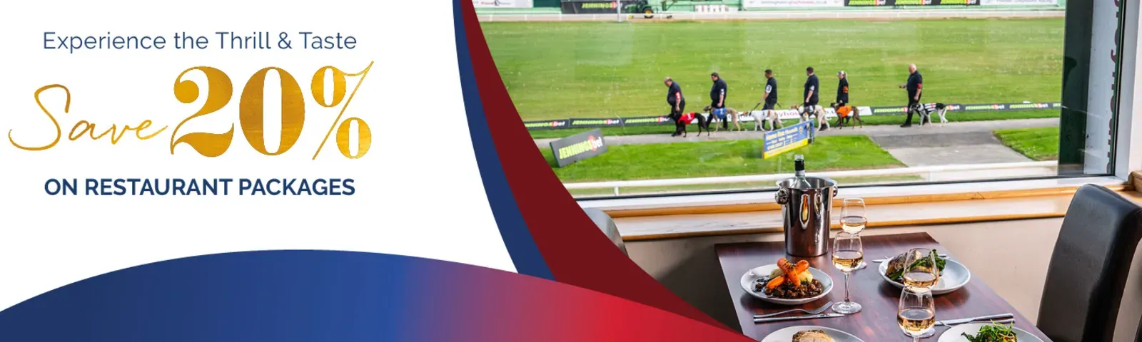 Take advantage of 20% off an unforgettable night of greyhound racing and fine dining.